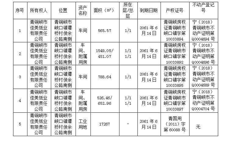 寧夏金融資產(chǎn)管理有限公司對青銅峽市佳美紙業(yè)有限責(zé)任公司不良債權(quán)處置營銷公告